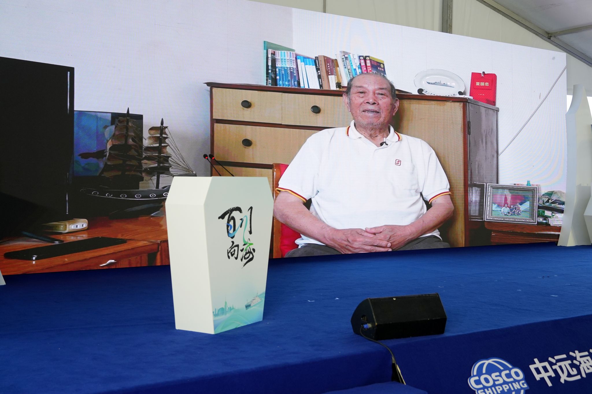 Captain He Qinghua announced the voyage plan and details of the upcoming exhibition tour. Yu Lei, Assistant to the President of COSCO Shipping (Hong Kong) and General Manager of Shenzhen New Century Company, presented the design concept behind the “Vibrant Ocean” themed hull wrap of the Xinhongzhuan and gifted a commemorative stamp album to Captain He.